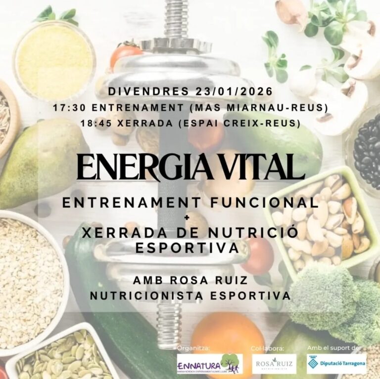 Entrenament funcional 🏋️♀️🔥 adaptat a tots els nivells + xerrada on compartirem una estona de consells pràctics de nutrició esportiva 🥑💧 de la mà de la Rosa Ruiz.