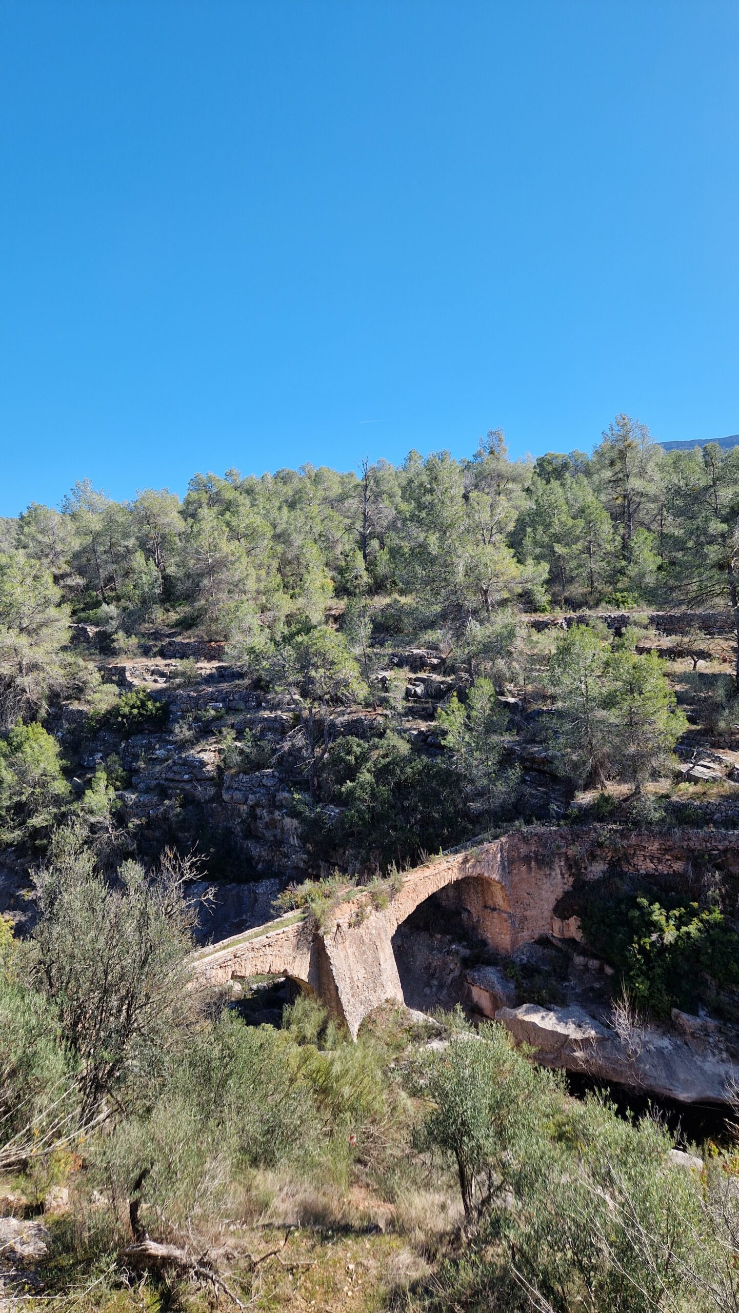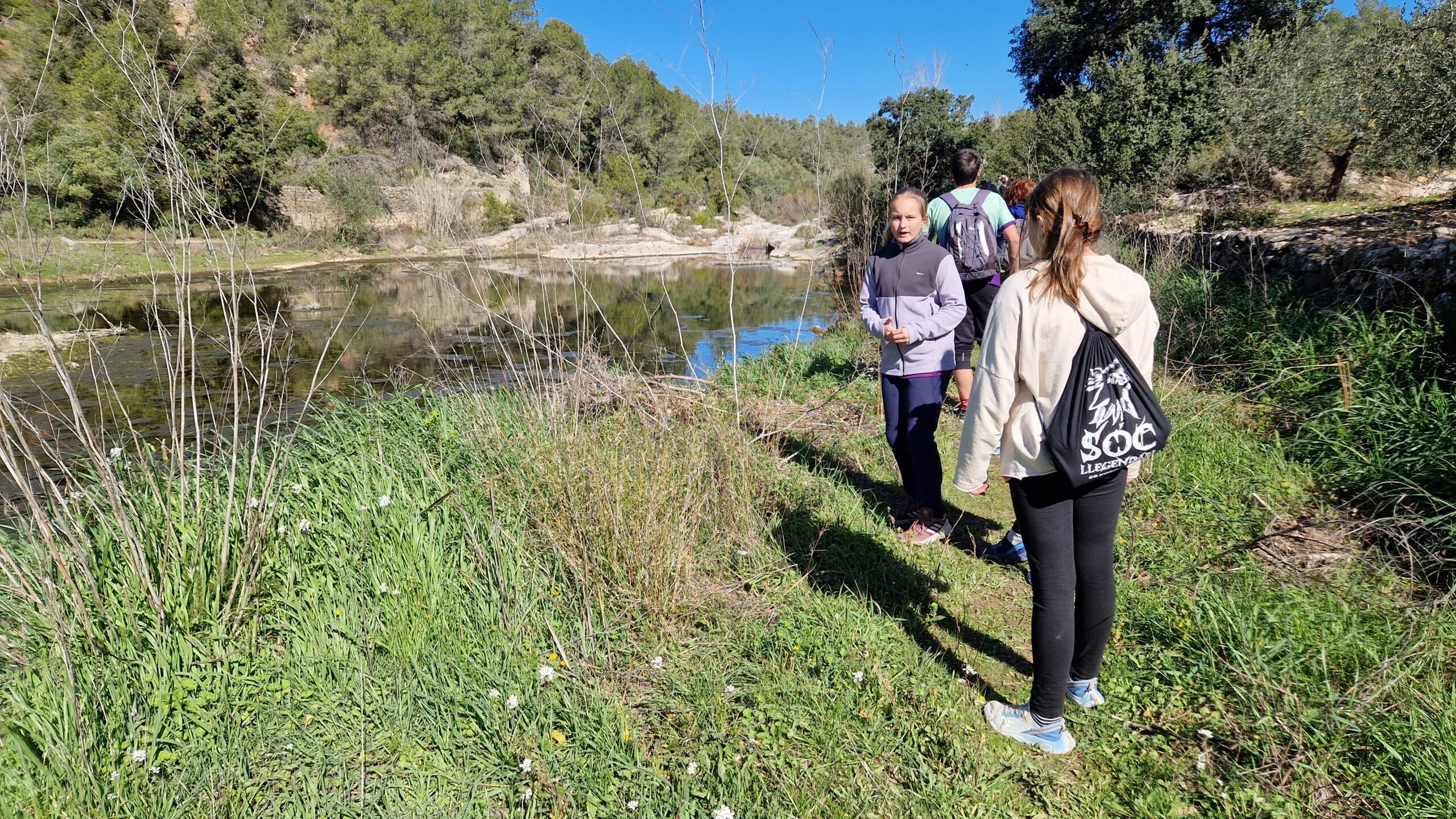 Anem a buscar la riera de Marçà, que gràcies a la pluja de les últimes setmanes hi trobem encara l’aigua corrent avall. Olles i bassals plens de vida, i el xiuxiueig de l’aigua que no deixa de saltar entre les pedres. Saltant entre les pedres i seguint el corriol que hi passa pel seu marge, hem aconseguit superar aquest tram.